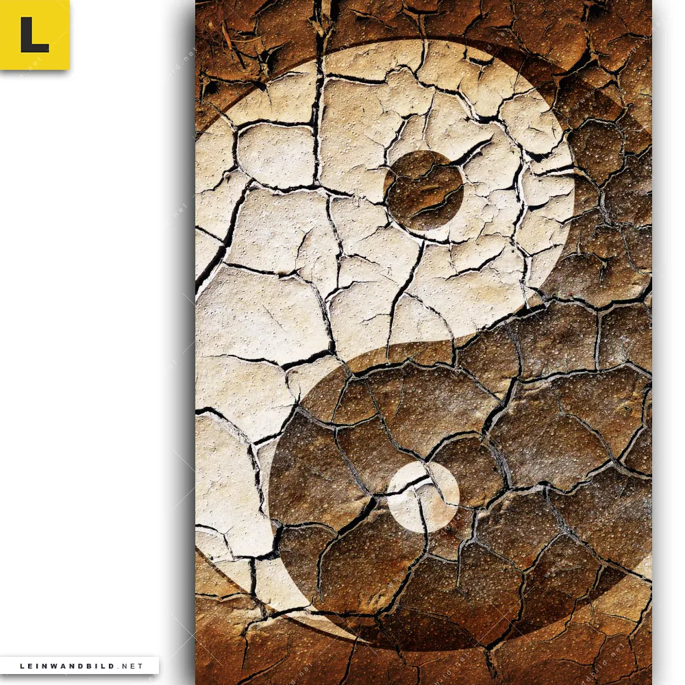 Du konfigurierst Dein individuelles Leinwandbild | Yin Yang auf rissiger Erde | Hochformat und wir produzieren es NEU für Dich. Unsere Buddha - Feng Shui Leinwände sind KEINE Lagerware. Du bist Dir unsicher, welches Motiv oder Format das richtige für dein individuelles Keilrahmenbild ist, dann helfen wir dir gerne weiter und beraten dich!