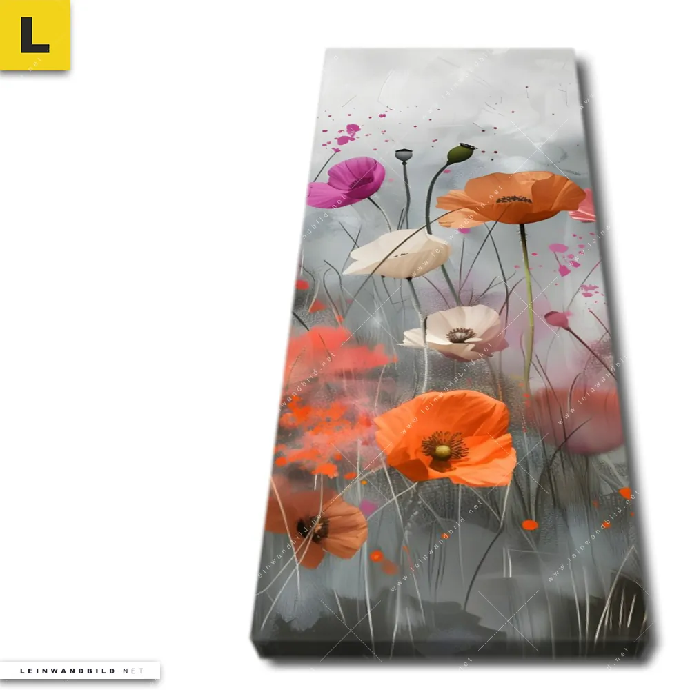 Du konfigurierst Dein individuelles Leinwandbild | Zarte Mohnblumen im Wind | Schmal und wir produzieren es NEU für Dich. Unsere Blumen - Botanik, Landschaften Leinwände sind KEINE Lagerware. Du bist Dir unsicher, welches Motiv oder Format das richtige für dein individuelles Keilrahmenbild ist, dann helfen wir dir gerne weiter und beraten dich!