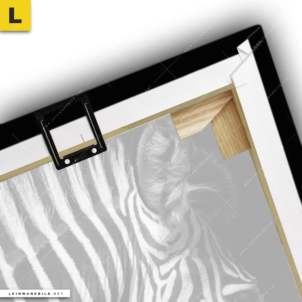 Du konfigurierst Dein individuelles Leinwandbild | Zebra Schwarzweiß | Hochformat und wir produzieren es NEU für Dich. Unsere Tierwelt Leinwände sind KEINE Lagerware. Du bist Dir unsicher, welches Motiv oder Format das richtige für dein individuelles Keilrahmenbild ist, dann helfen wir dir gerne weiter und beraten dich!