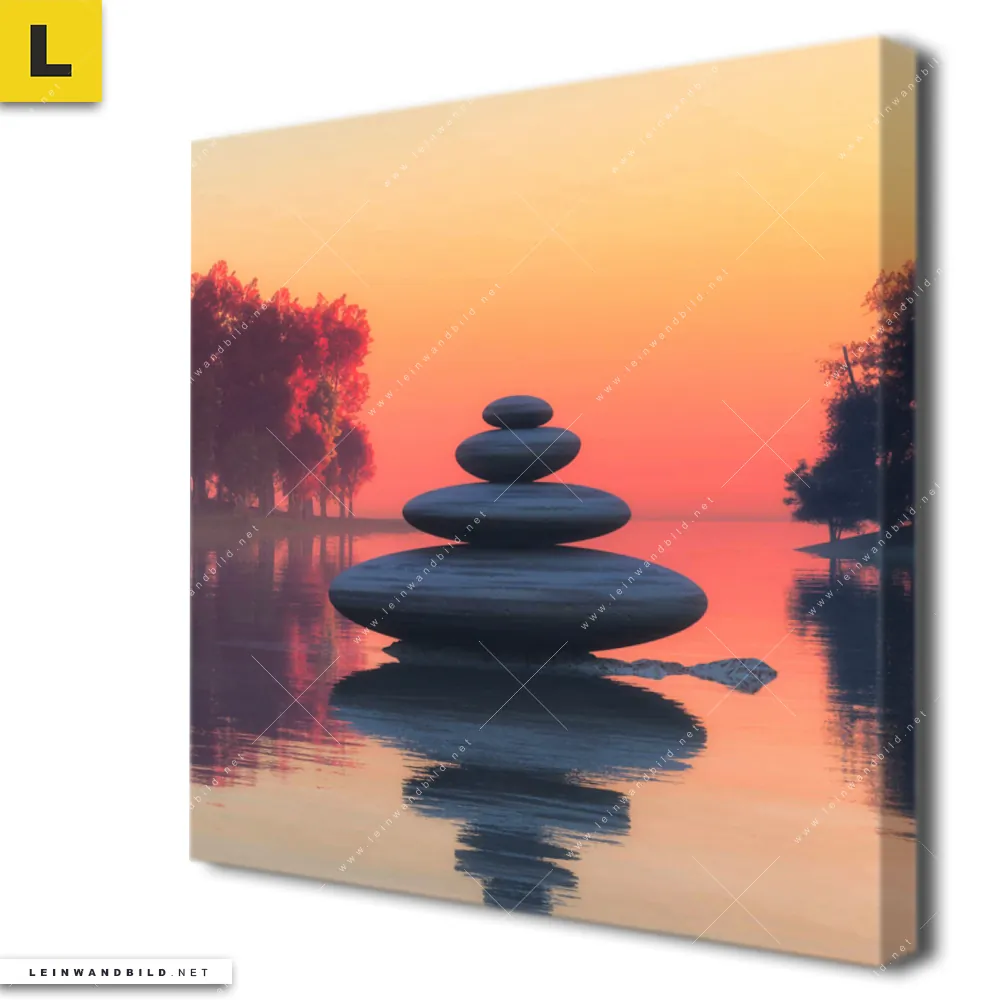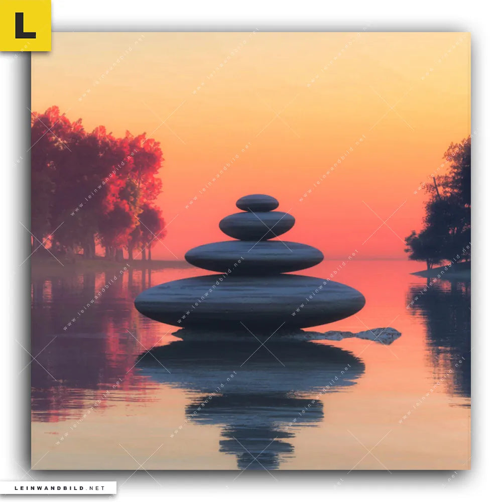 Du konfigurierst Dein individuelles Leinwandbild | Zen Steine & Sonnenuntergang | Quadrat und wir produzieren es NEU für Dich. Unsere Landschaften, Buddha - Feng Shui Leinwände sind KEINE Lagerware. Du bist Dir unsicher, welches Motiv oder Format das richtige für dein individuelles Keilrahmenbild ist, dann helfen wir dir gerne weiter und beraten dich!